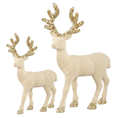 2er Set Deko Rentier Weiß Rot od. Grün Kunststoff beflockt moderne Weihnachtsdekoration Dekofigur Weihnachten