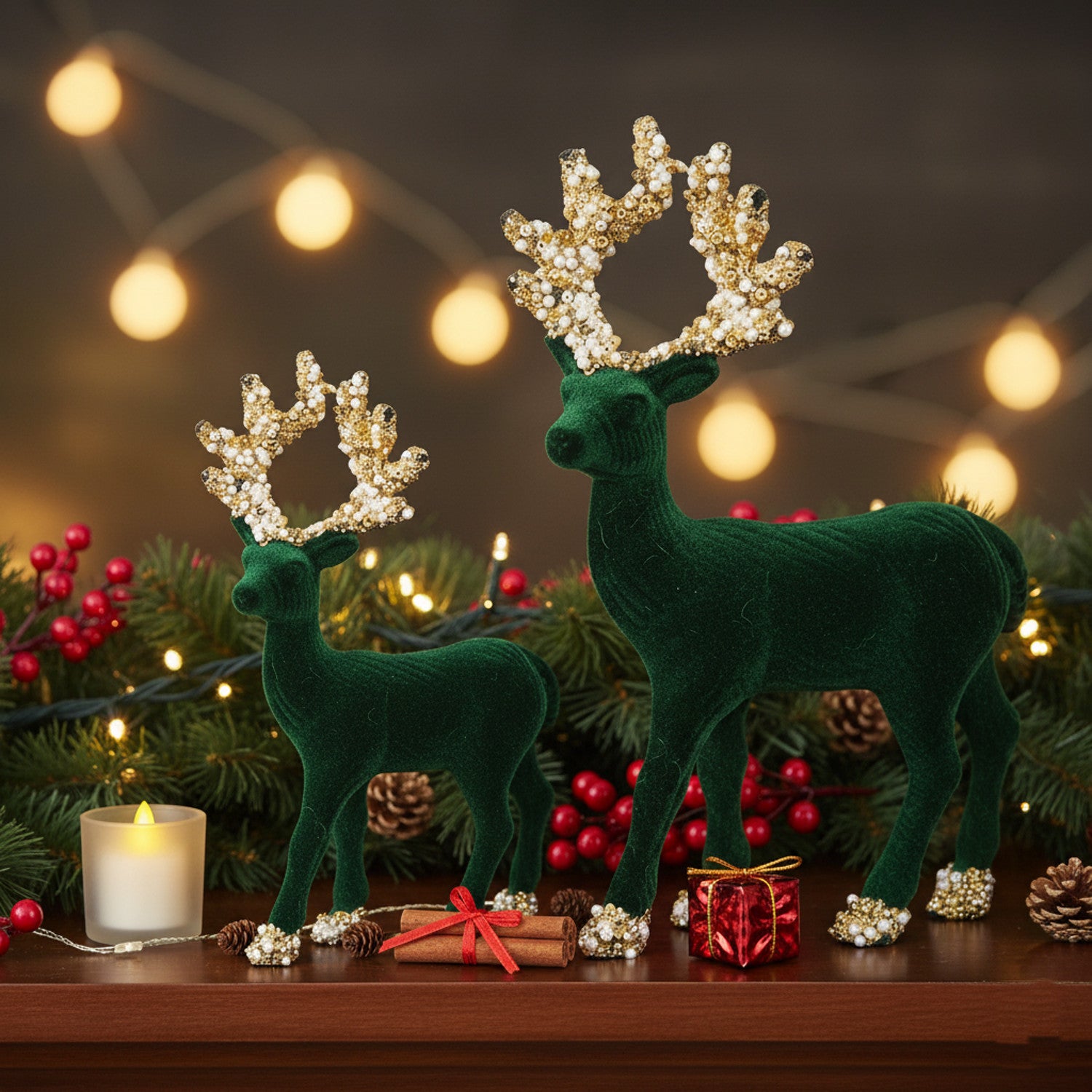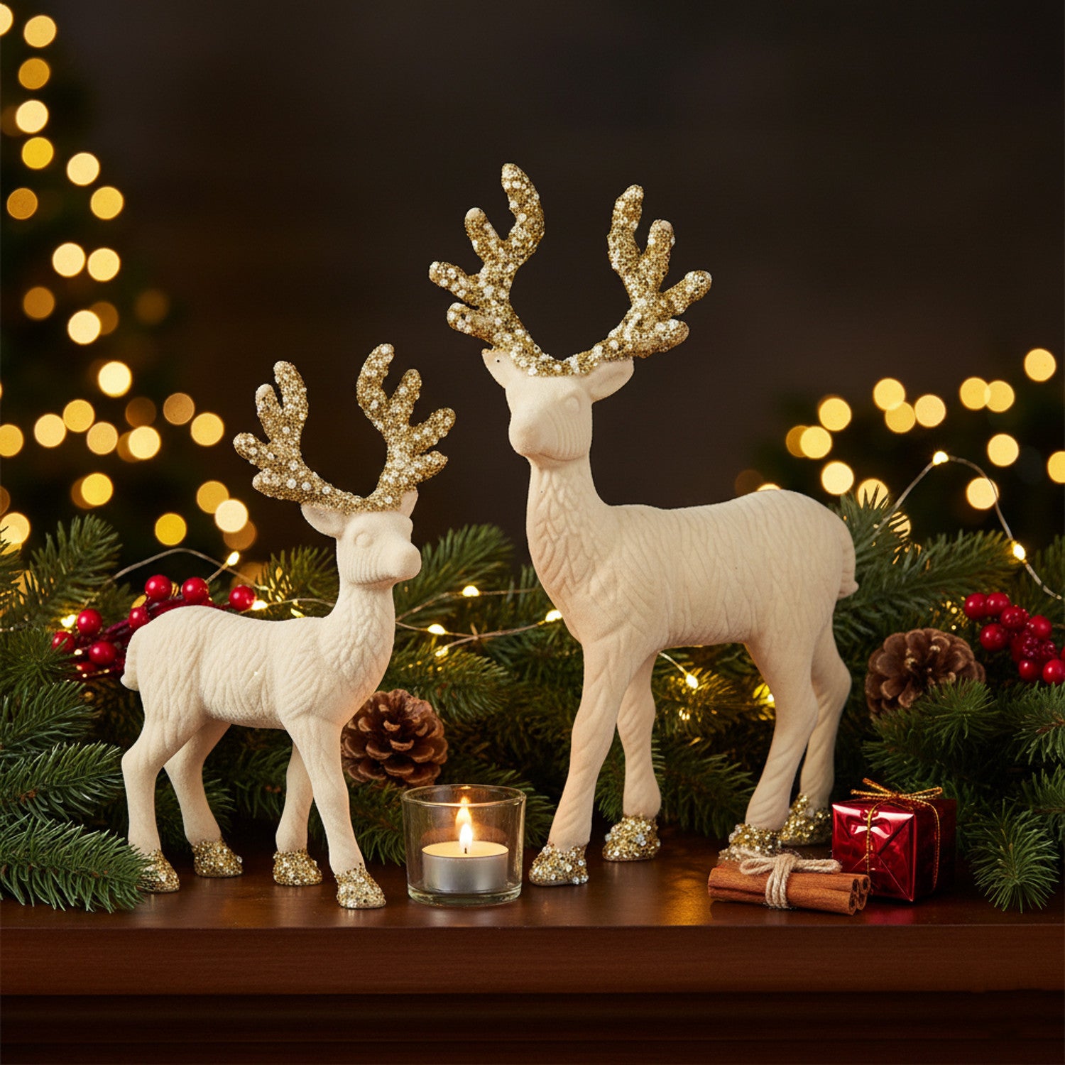 Dieses 2er Set Dekorentiere sorgt sofort für einen hochwertigen und exklusiven Look in jeder Weihnachtsdekoration.