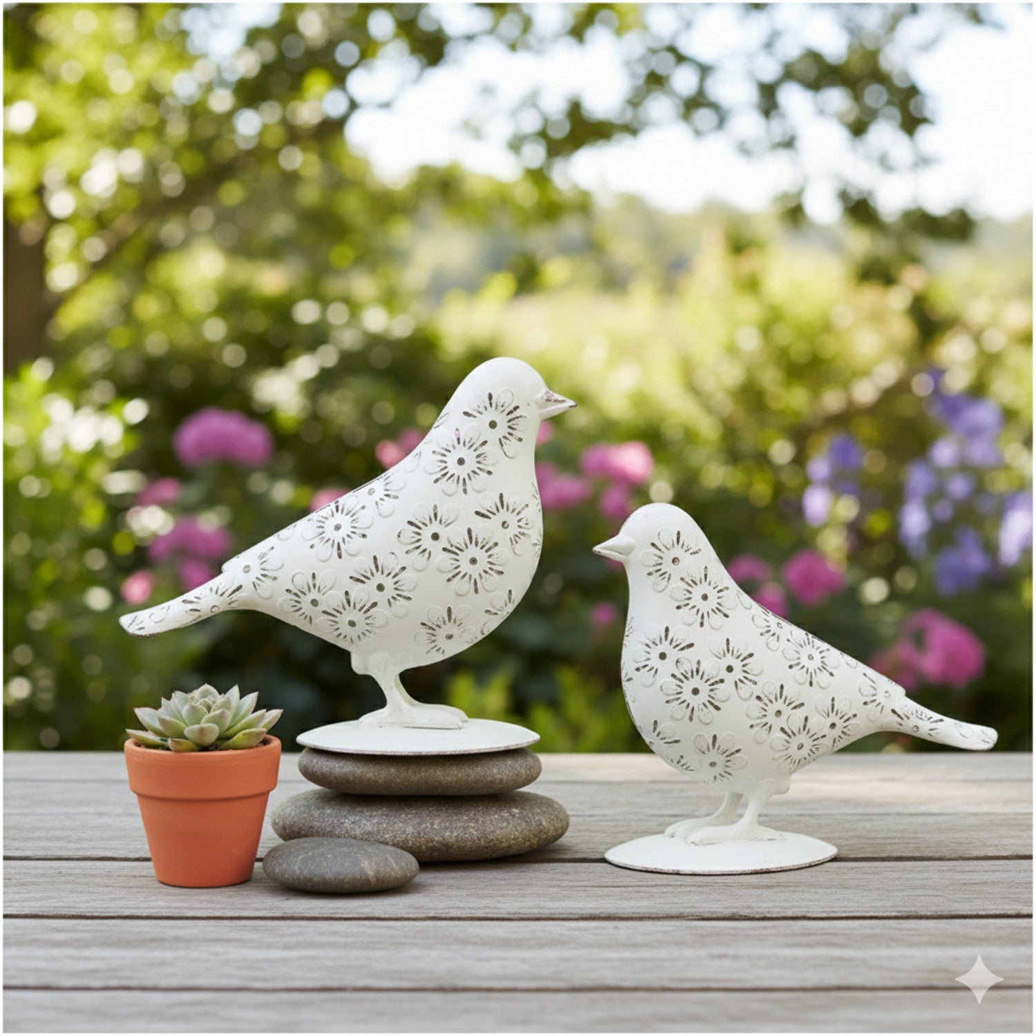 Ob auf der Fensterbank, im Regal, auf dem Tisch oder im Gartenhaus – die Vögel sind vielseitig einsetzbar und fügen sich mühelos in verschiedene Einrichtungsstile wie Landhaus, Vintage oder modern ein.