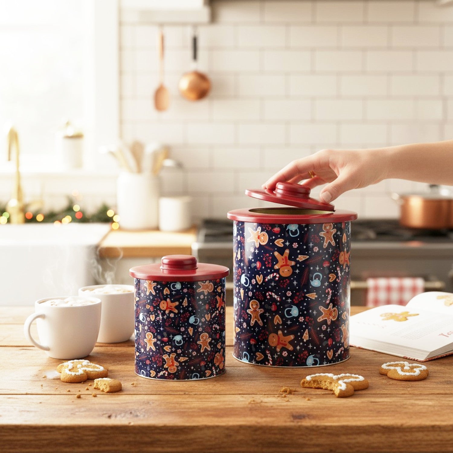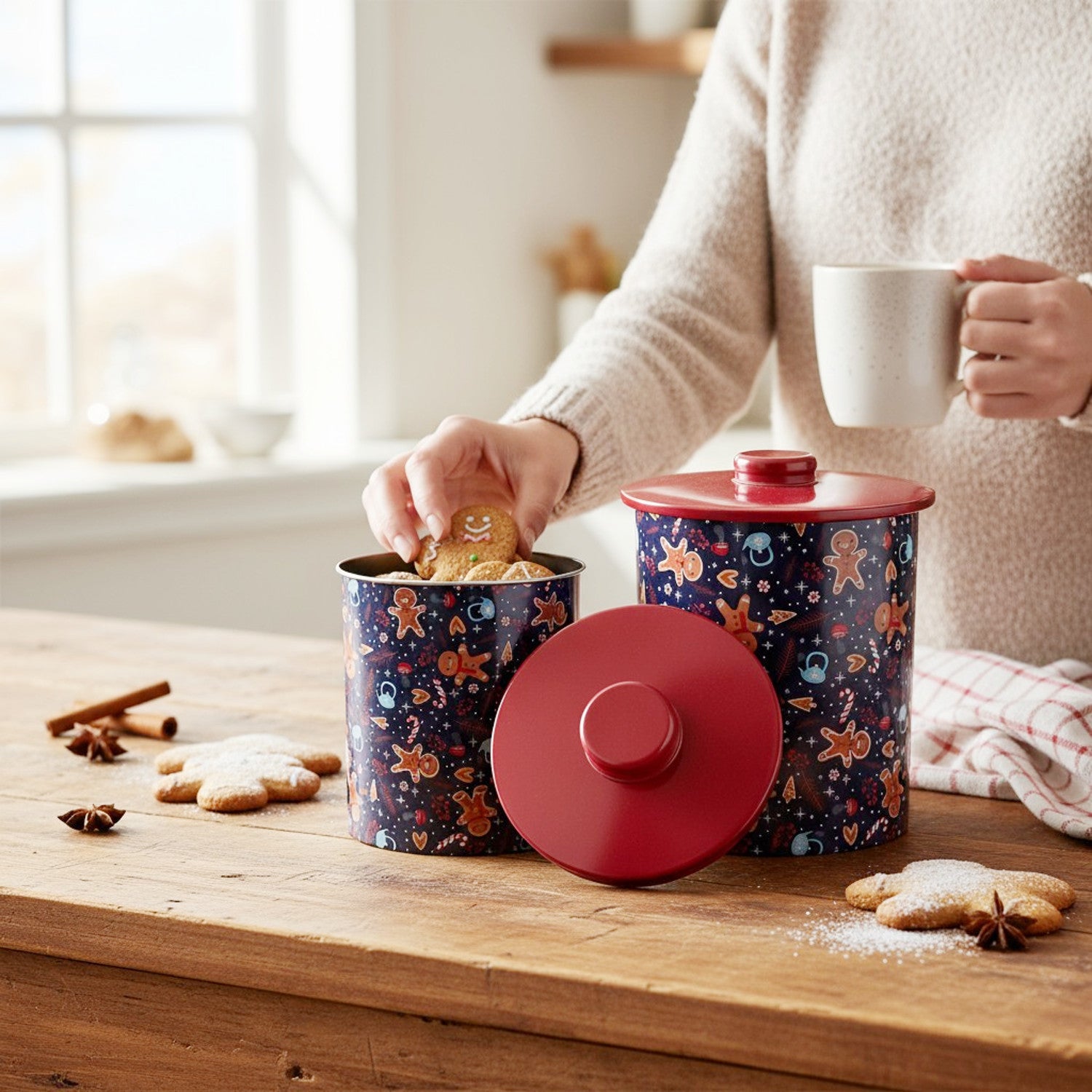 Die hochwertigen Dosen aus Metall sind ideal zum Lagern von Plätzchen, Gebäck oder Süßigkeiten und sorgen gleichzeitig für weihnachtliche Atmosphäre in der Küche.