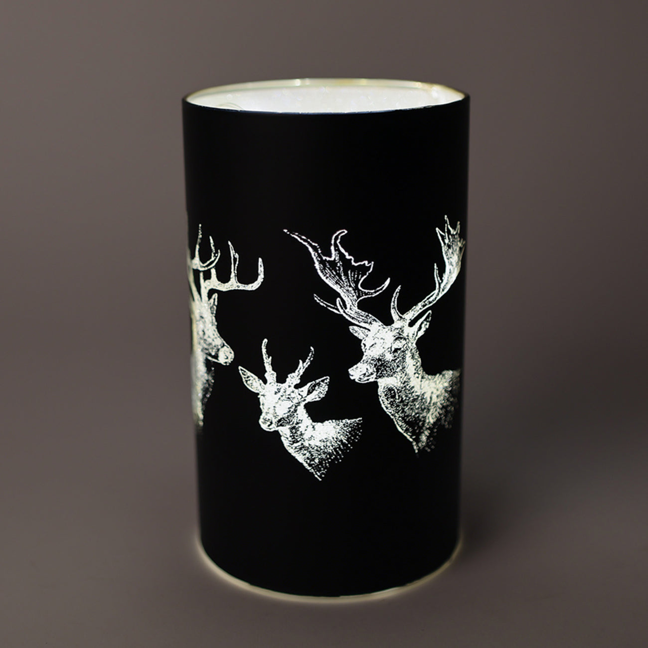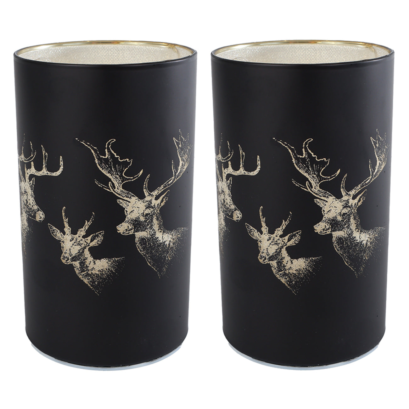 Mit diesem 2er Set LED-Windlichter in edlem Schwarz mit goldfarbenen Hirschmotiven verleihst du jedem Raum in Sekundenschnelle eine stilvolle, warme Atmosphäre.