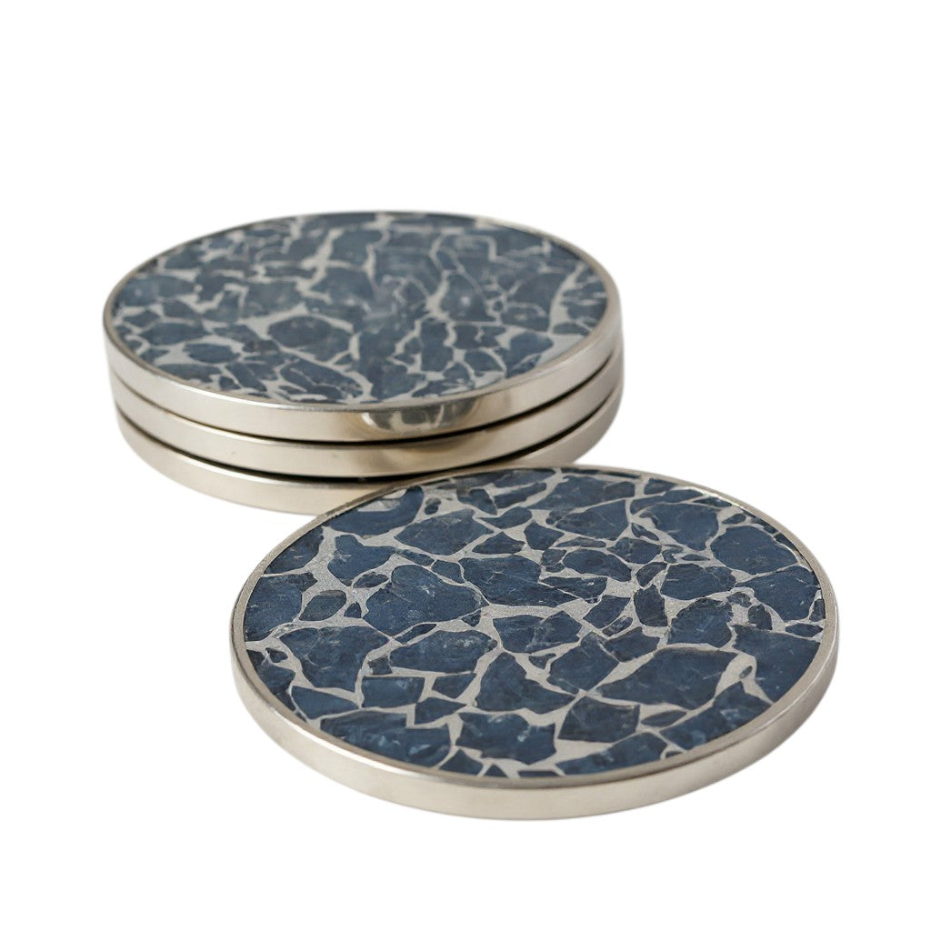 Die Untersetzer sind rund gearbeitet und haben einen Durchmesser von 10 cm sowie eine Höhe von 0,7 cm. Dadurch bieten sie ausreichend Platz für Gläser, Tassen, Becher oder kleine Karaffen. Die flache Bauweise sorgt dafür, dass sie nicht auftragen und sich unauffällig in jede Tischgestaltung einfügen. Die Metallumrandung verleiht Stabilität, schützt die Kanten und sorgt für eine saubere, wertige Optik.
