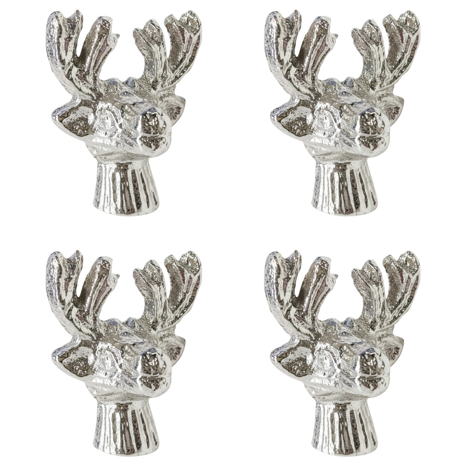 4er Set Kerzenstecker Rentier aus Aluminium, silberfarben