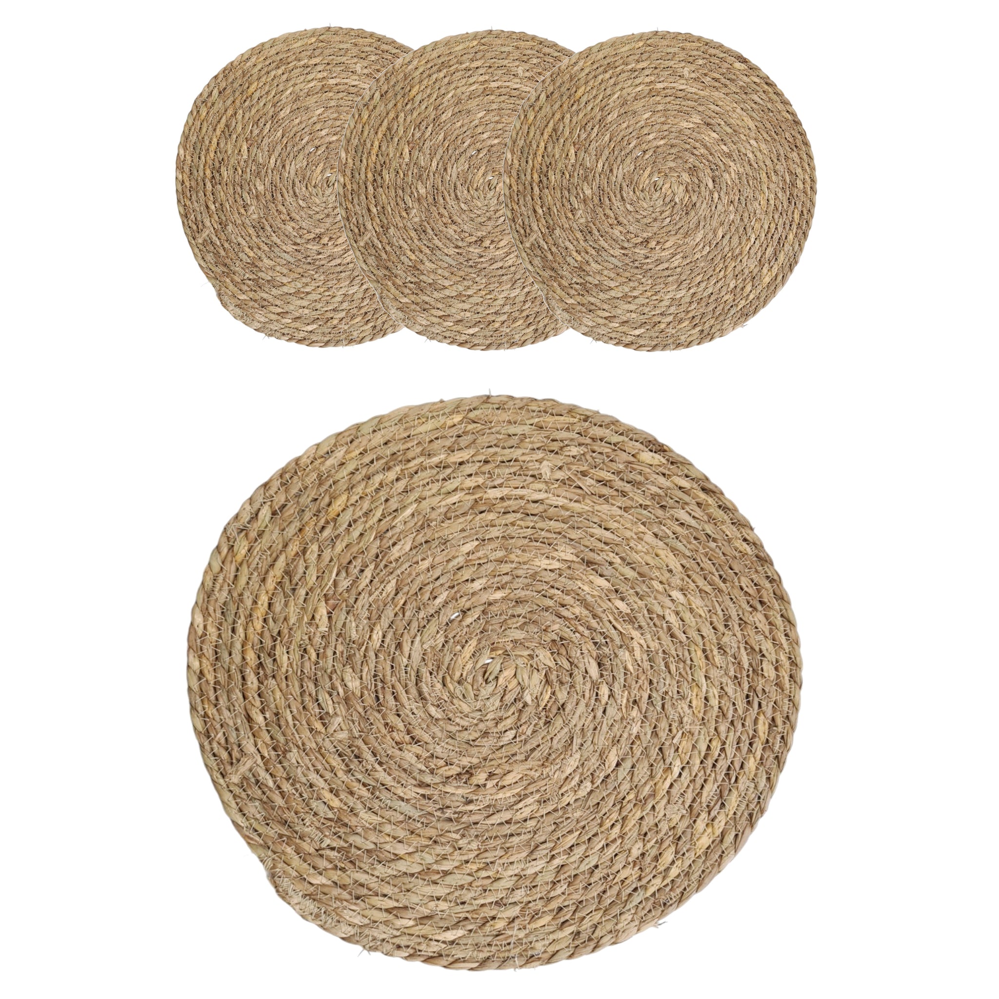 Mit diesem 4er Set runder Platzmatten aus naturfarbenem Stroh bringen Sie sofort einen Hauch von Natur und Stil auf Ihren Tisch.