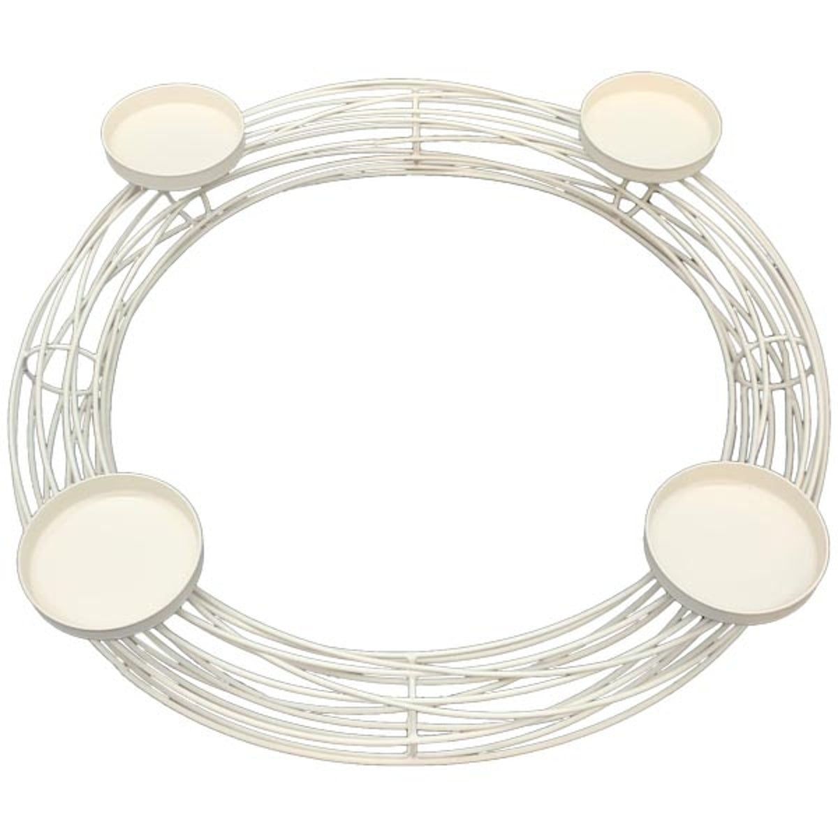 Vier runde Kerzenteller mit einem Durchmesser von jeweils 7,4 cm bieten Platz für handelsübliche Stumpenkerzen. Die gleichmäßige Anordnung sorgt für Stabilität und ein harmonisches Gesamtbild. Dank der schlichten Farbgebung lässt sich der Kranz flexibel dekorieren – ob mit Tannenzweigen, Kugeln oder Schleifen, er passt sich jedem Stil an.