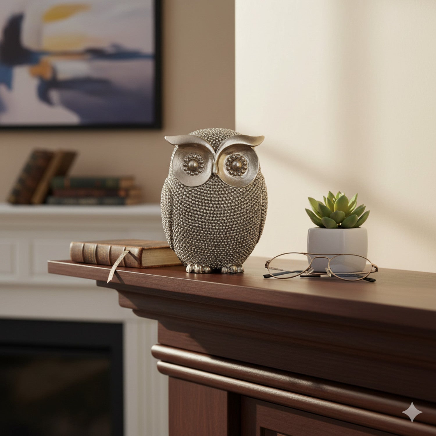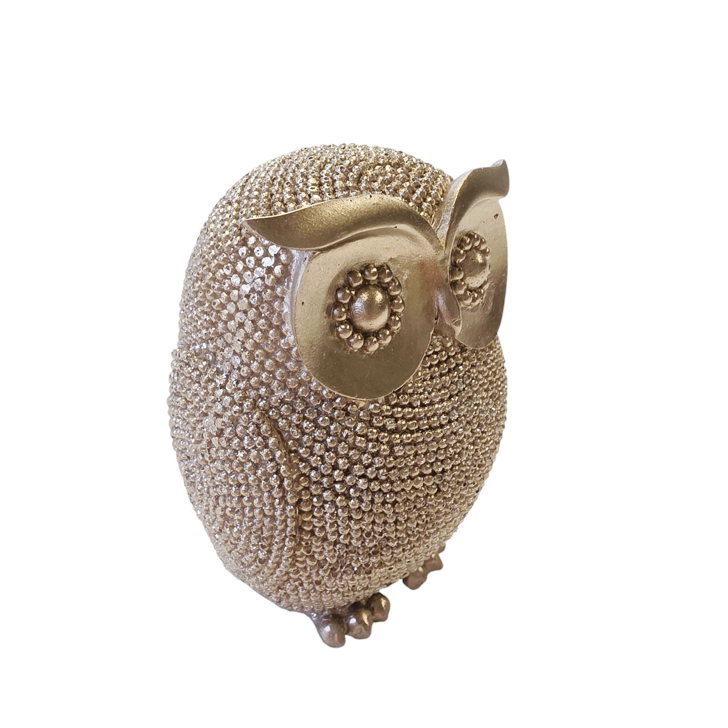 Die goldene Dekofigur in Form einer Eule ist ein elegantes Wohnaccessoire aus hochwertigem Polystone.
