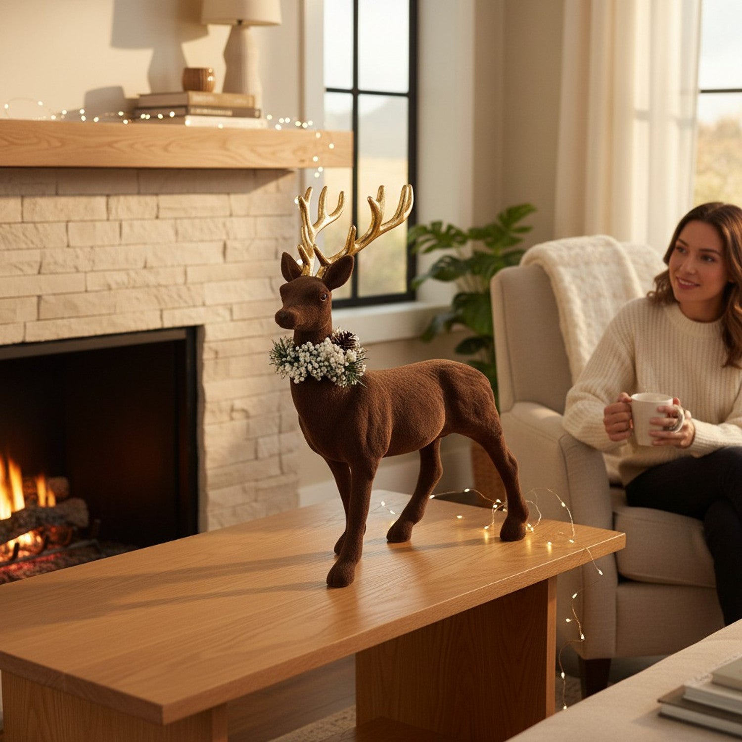 Dieser Dekohirsch in edlem Braun ist eine stilvolle Ergänzung für jede Winter- und Weihnachtsdekoration.