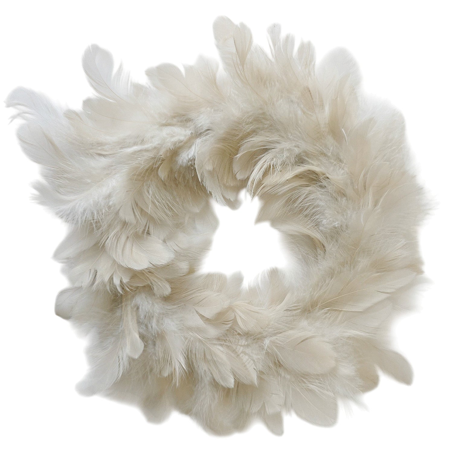 Der Kranz besteht aus dicht angeordneten, weichen Federn, die eine besonders voluminöse und hochwertige Optik erzeugen. Die natürliche Farbgebung in Creme- und Beigetönen wirkt ruhig, modern und fügt sich harmonisch in nahezu jedes Wohnambiente ein – von skandinavisch über modern bis hin zu klassisch oder Landhausstil.