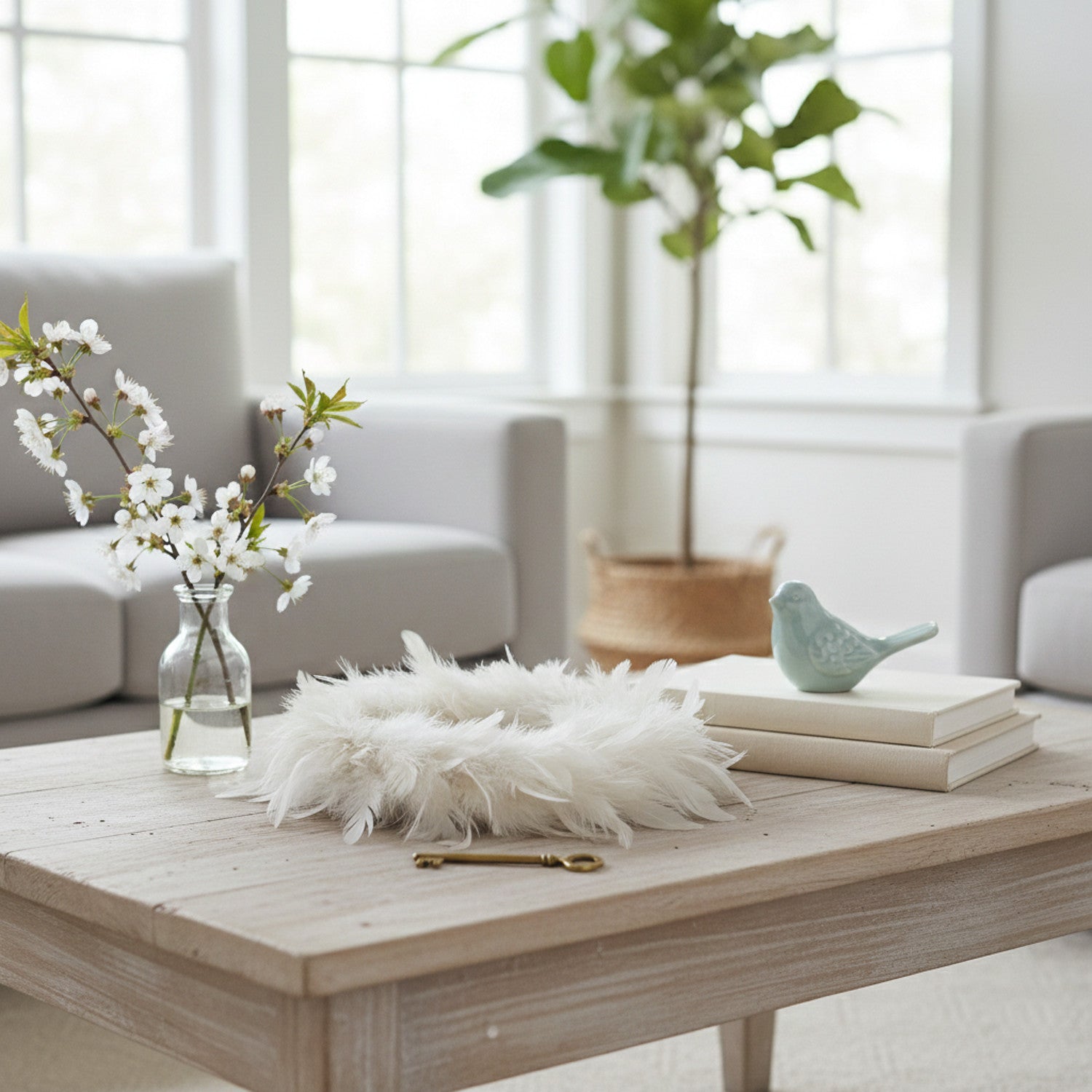 Die feinen Federn sorgen für eine weiche, luftige Struktur und machen den Kranz zu einem eleganten Dekoelement für den Innenbereich. Ob als Osterdeko, Frühlingsdeko, Tischdekoration, Fensterdekoration oder als stilvoller Akzent im Wohn- und Esszimmer – dieser Federkranz lässt sich vielseitig einsetzen und einfach in bestehende Dekokonzepte integrieren. Der Kranz wird fertig geliefert und kann sofort platziert oder individuell mit Bändern, Anhängern, Ostereiern oder Trockenblumen ergänzt werden.