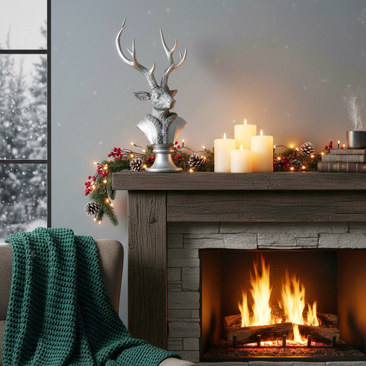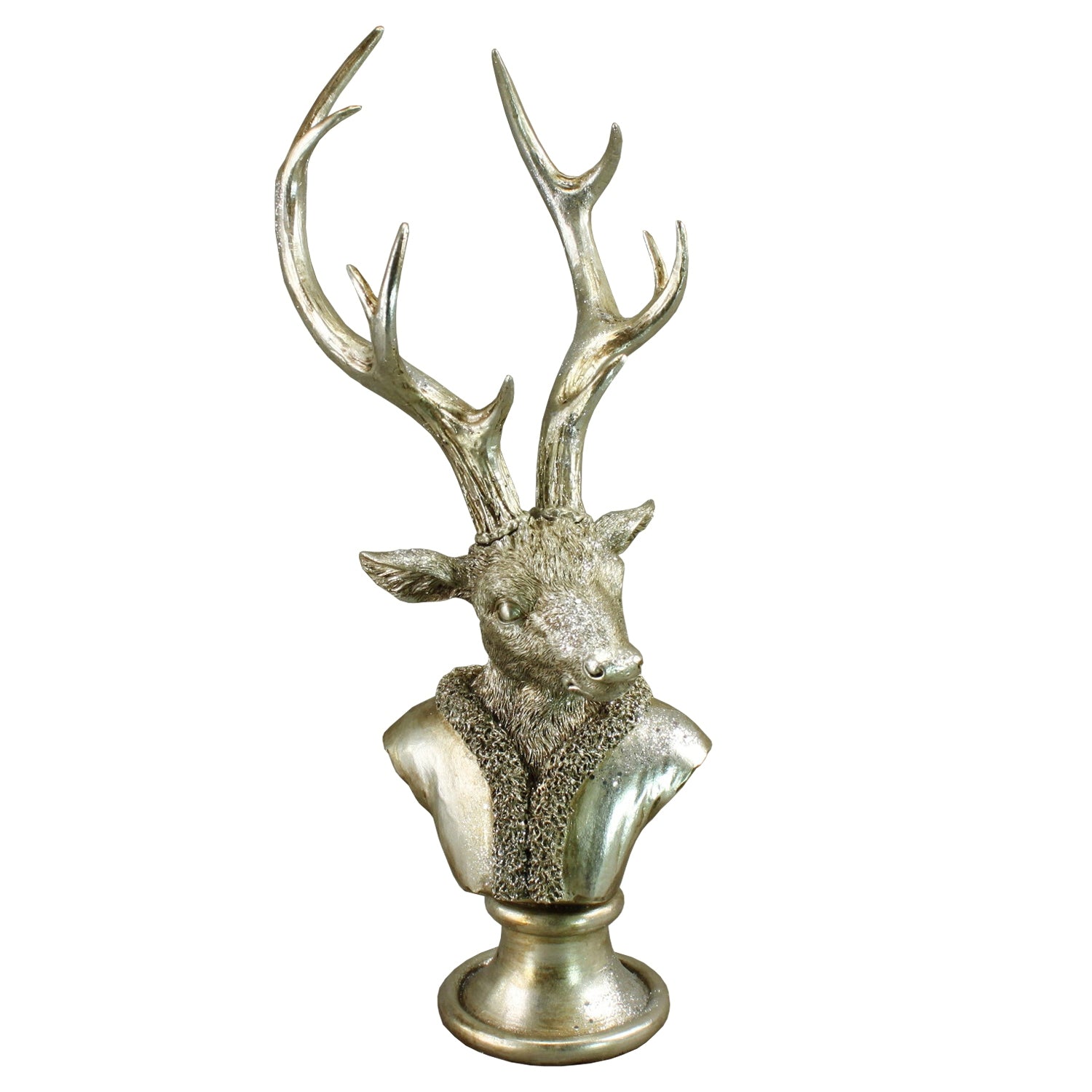 Hirschbüste auf Sockel Silber mit glitzernden Akzenten