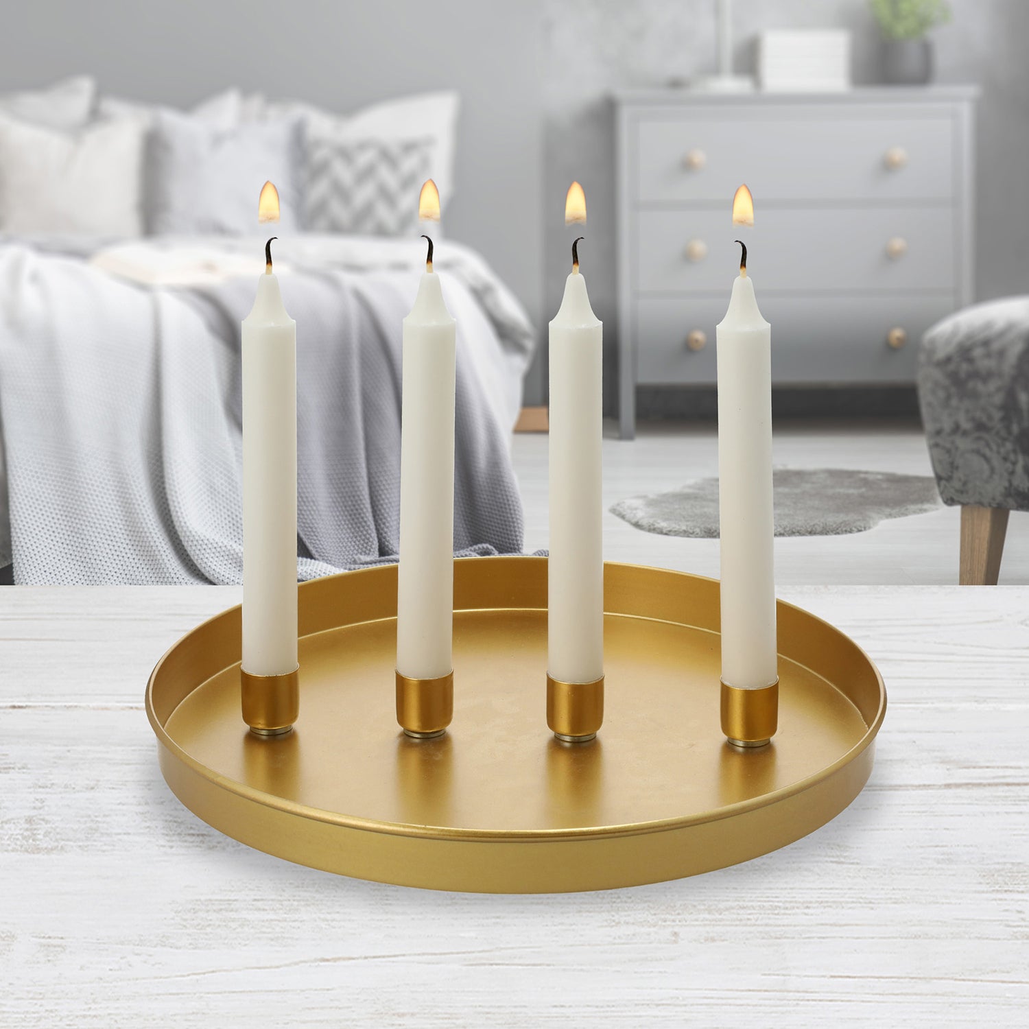 Der Kerzenteller hat einen Durchmesser von 25 cm und eine Höhe von 3 cm. Die Halter sind für Stabkerzen bis 2,3 cm Durchmesser geeignet. Dank der Magnetfunktion stehen die Kerzen stabil und können flexibel neu angeordnet werden.