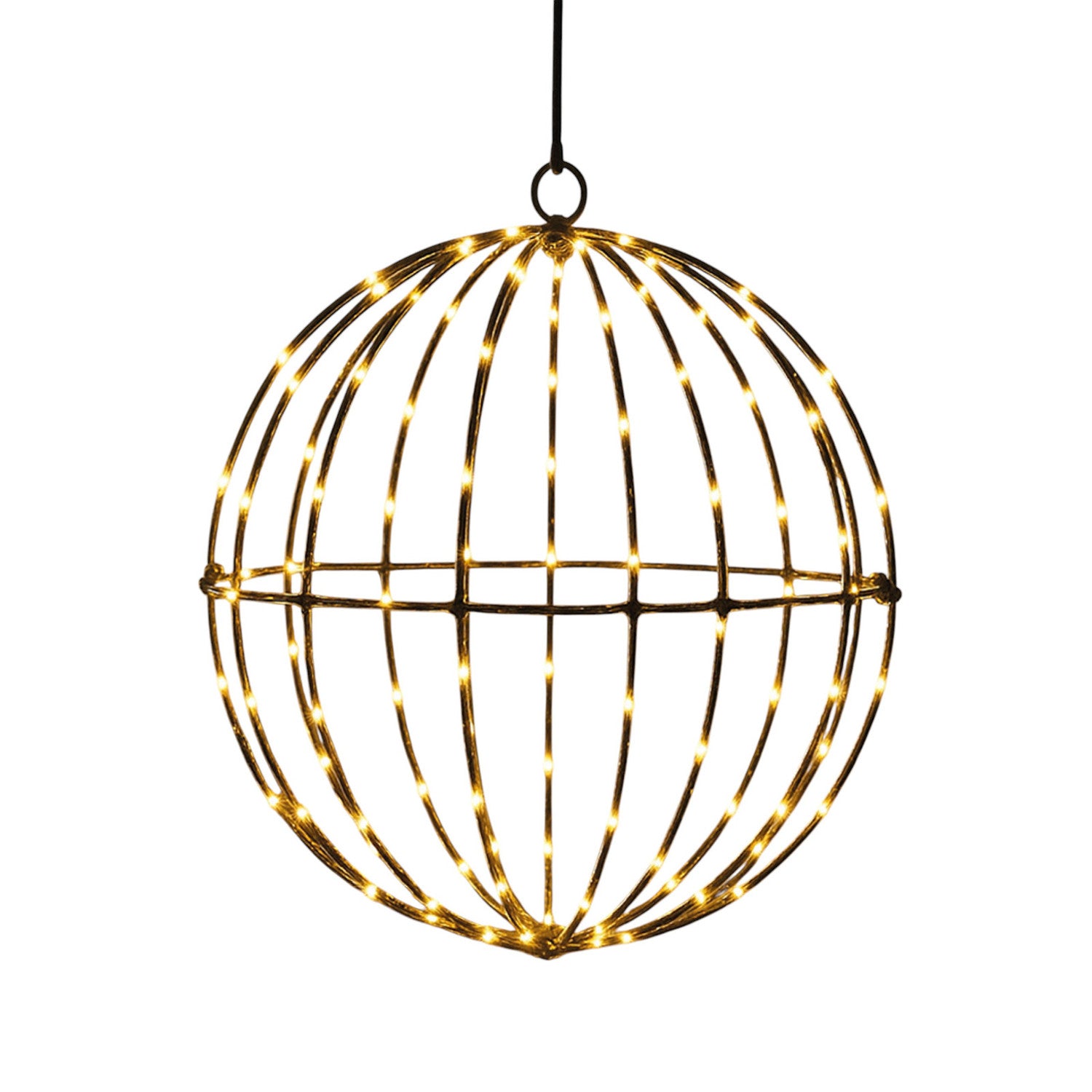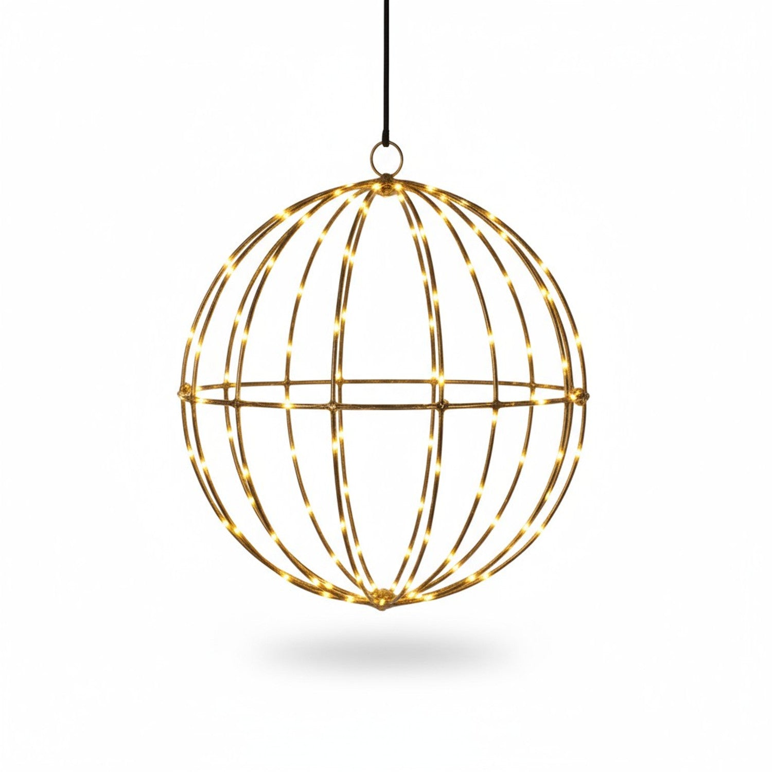 Das kugelförmige Drahtgestell ist mit zahlreichen leuchtenden LEDs versehen, die gleichmäßig über die gesamte Form verteilt sind. Dadurch entsteht ein harmonischer Lichteffekt, der jeden Raum, Balkon oder Garten aufwertet.
