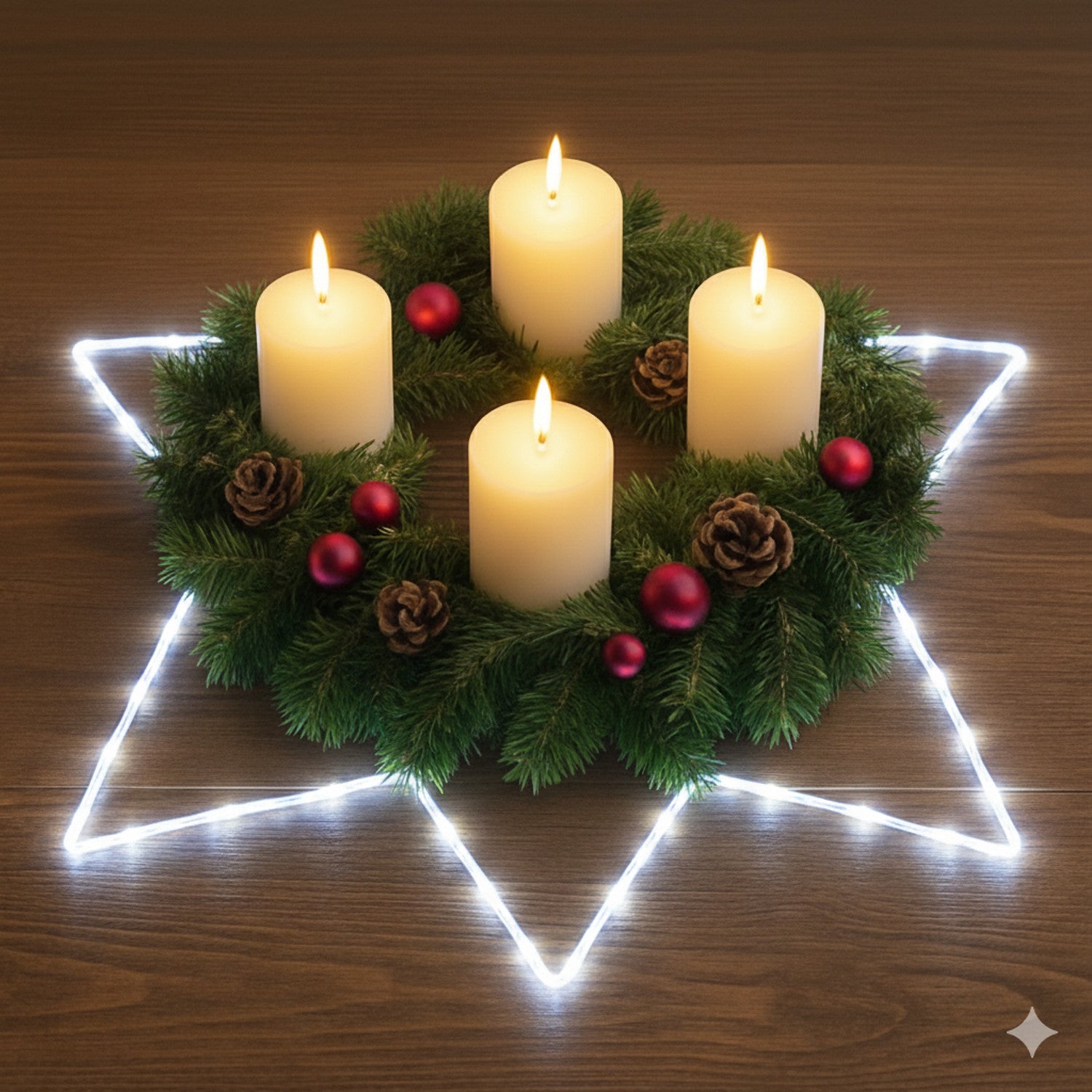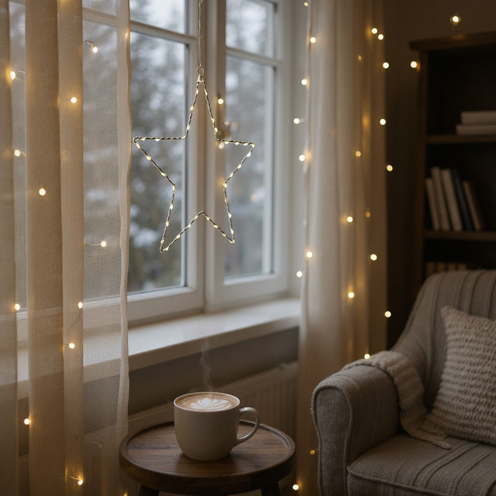Mit 40 integrierten LEDs sorgt er für ein angenehmes Licht, das besonders in der dunklen Jahreszeit eine behagliche Atmosphäre schafft. Der Stern hat eine Größe von 40 x 40 cm und eine Tiefe von 0,3 cm – ideal zum Aufhängen im Fenster, an der Wand oder über dem Tisch.