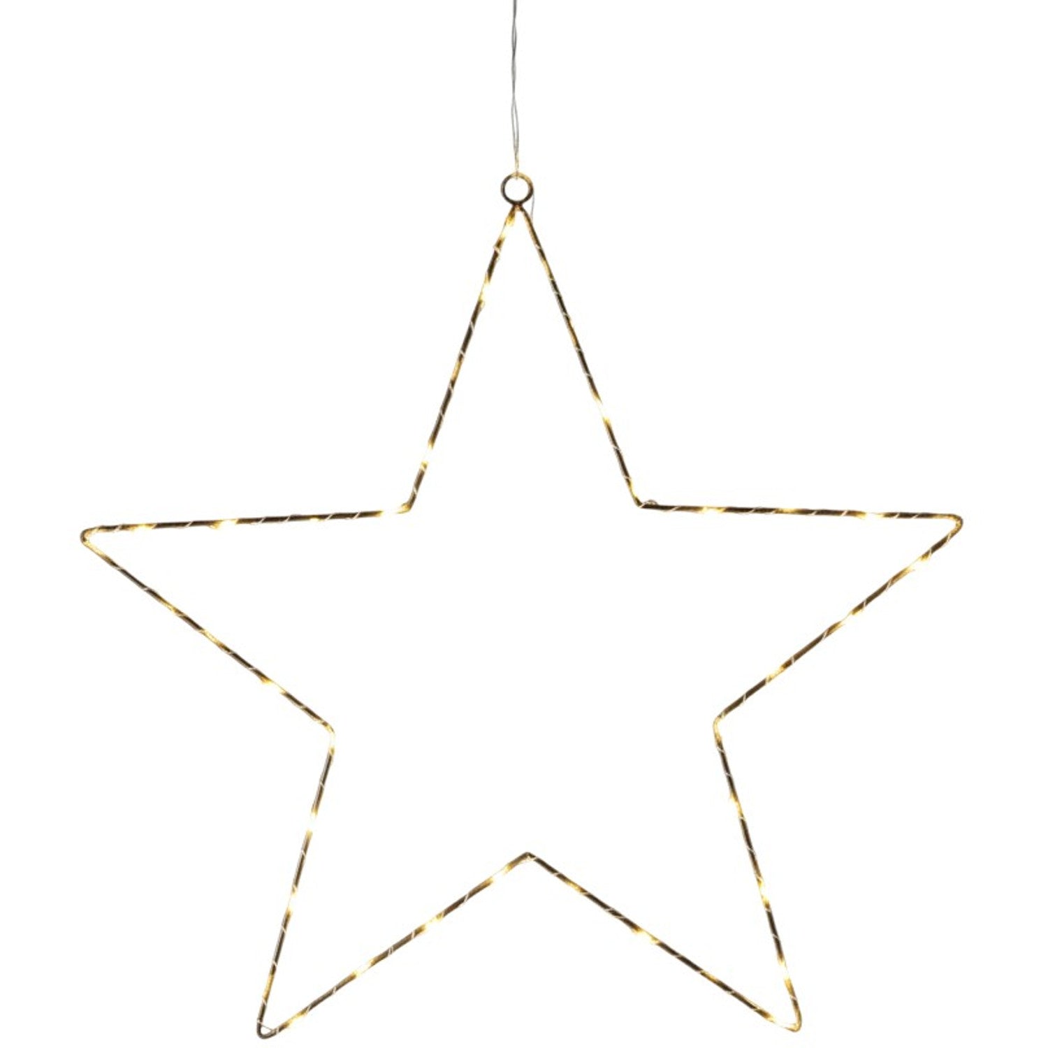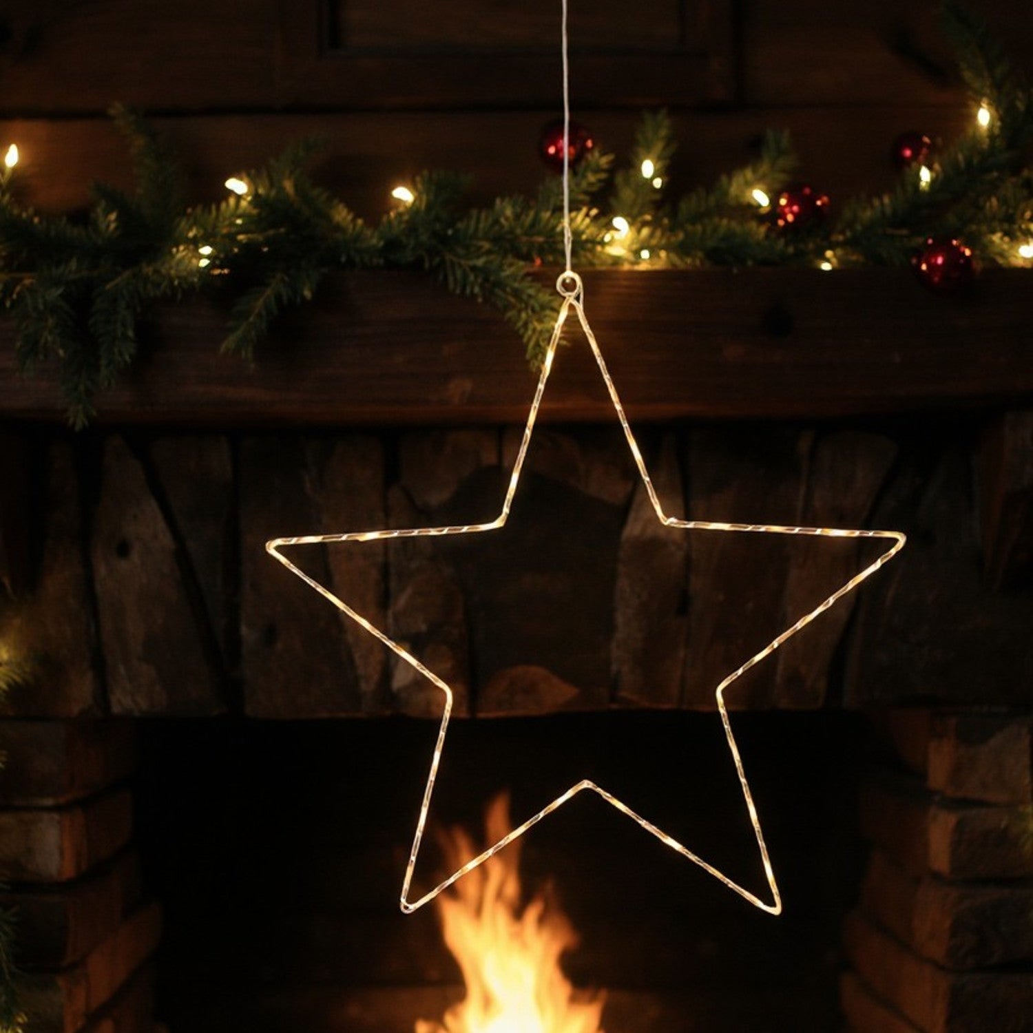 Der Stern wird mit 3 AA-Batterien betrieben (nicht im Lieferumfang enthalten) und hat eine 30 cm lange Zuleitung. Die LED-Lichter sind gleichmäßig entlang des filigranen Metallrahmens verteilt, wodurch eine klare, definierte Sternform entsteht.